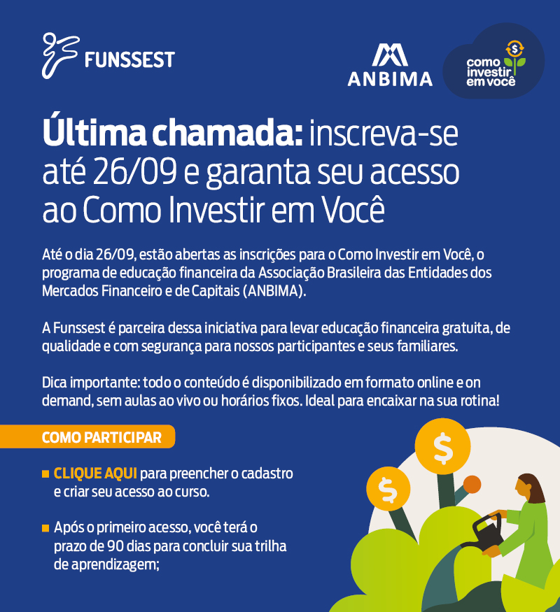 Última chamada para as inscrições do Como Investir em Você, até 26/09
