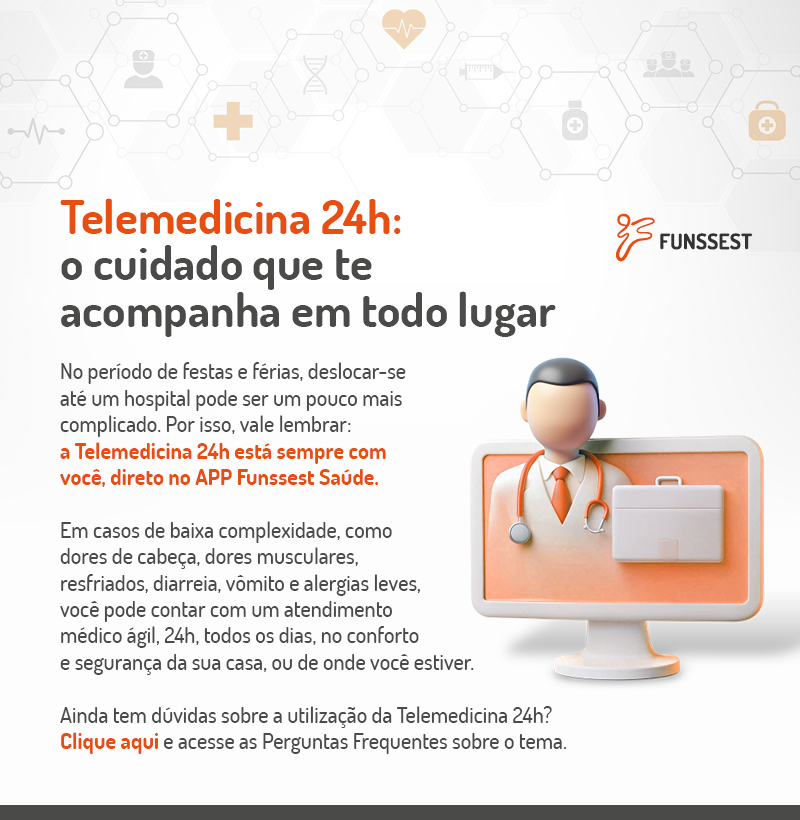Vai viajar no período de festas? A Telemedicina 24h acompanha você, direto no APP Funssest Saúde